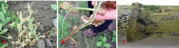 – Héo Fusarium: do nấm Fusarium oxysporum, Fusarium sp. (bào tử hậu tồn tại trong đất, xâm nhiễm cả rễ cây không phải là ký chủ); khi cây bị bệnh, toàn bộ mạch dẫn hóa nâu, không còn chức năng dẫn dinh dưỡng và nước trong cơ thể cây trồng.